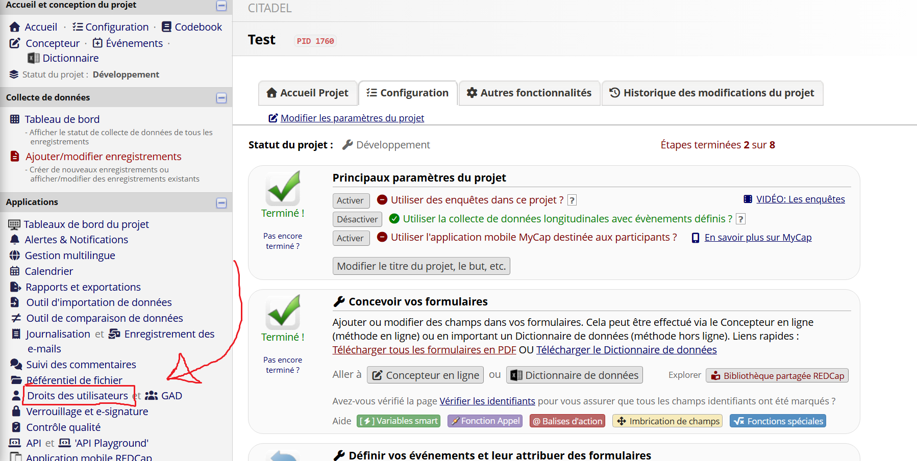 REDCap permet de définir très finement les droits des utilisateurs.